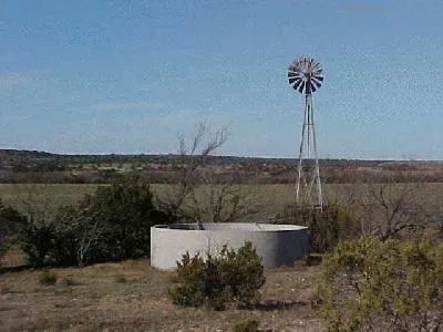 1 well w/elect. pump, 2 wells w/windmills, 2 large concrete water storages (strong wells), running creek (N. Valley Creek) with springs.