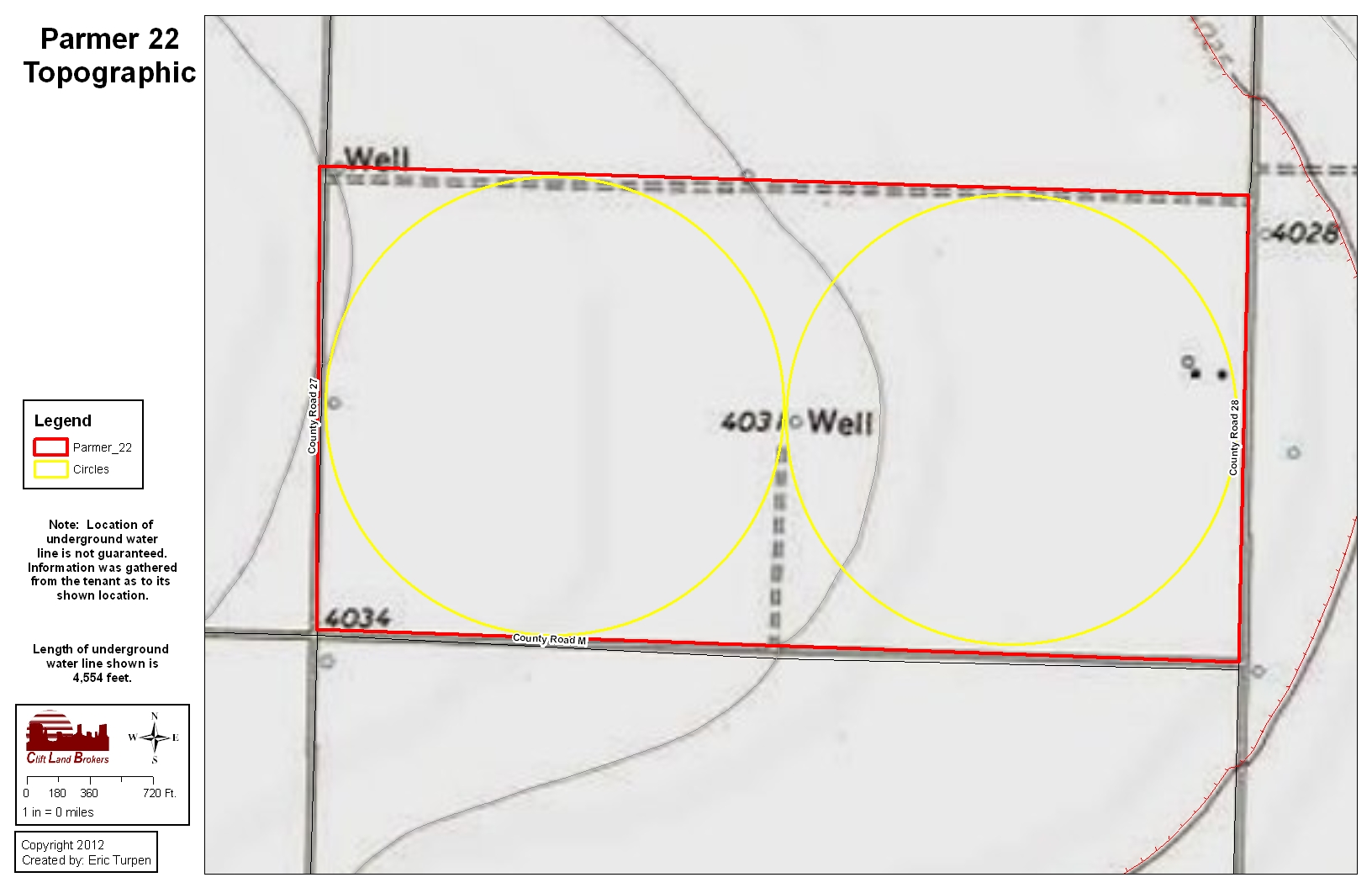 This is a very good farm that lays well and has good soil. There is a good yield history for this farm, which has been growing a 1/2 circle of corn, 1 1/2 circles of cotton, and dryland wheat. Farm is leased on a 1/4 crop share. Seller to retain half of the wind generation rights.