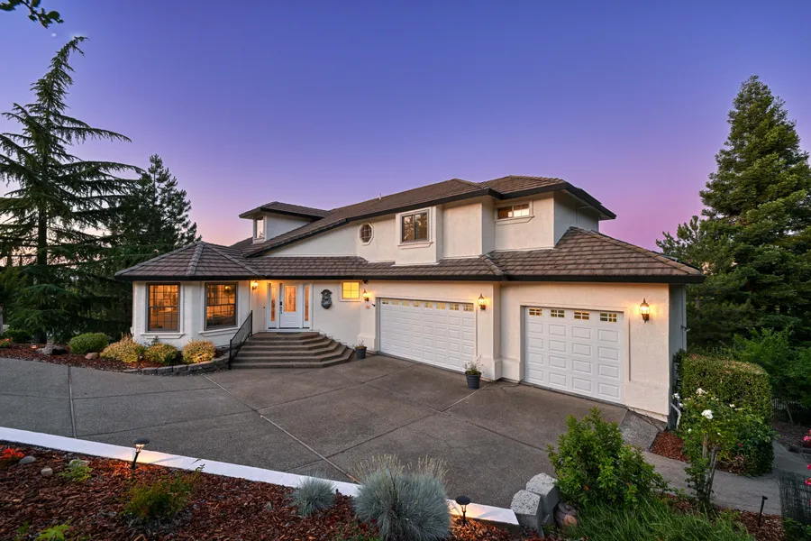 This stunning property is an oasis of luxury and comfort, offering an array of features that cater to your every need. As you step inside, you will be greeted by an abundance of natural light streaming through large windows, creating a bright and inviting atmosphere. The well-designed floor plan features a formal entry, elegant living and dining room, a gourmet kitchen equipped with stainless steel appliances, a large center island, a spacious breakfast nook with stunning views, inviting family room, and a main level bedroom with a full bath provides convenience and flexibility. The primary suite boasts a private deck with panoramic views and cozy sitting room, creating a serene retreat. The spacious layout includes a separate office space perfect for remote work or study, sophisticated wine cellar that wine enthusiasts will appreciate, an elevator for added convenience, owned solar, and three-car garage. The backyard is a true retreat, featuring lush landscape and soaring redwood trees, a sparkling pool, fire pit, and built-in BBQ perfect for entertaining or relaxing in style.