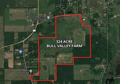 This is a beautiful sprawling farm located in Bull Valley, a quaint community, with a population of 1200. Bull Valley is just 5 miles east of Woodstock, IL. Woodstock metra station is only 3.4 miles west. Bull Valley is also 41 miles east of Rockford, Illinois. Combination farm with approximately 100 non-tillable timber acres.