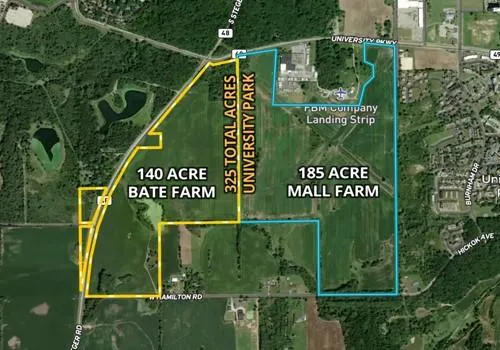 This 325 acre farm has a soil PI of 113.5 and is zoned R-1. The parcel is located less than 1 mile to the west of University Park, in Monee Township, Will County. The property is northeast Thorn Creek Headwater Preserve, is 1 mile west of Deer Creek Golf Course and 1 mile east of Governors State University.