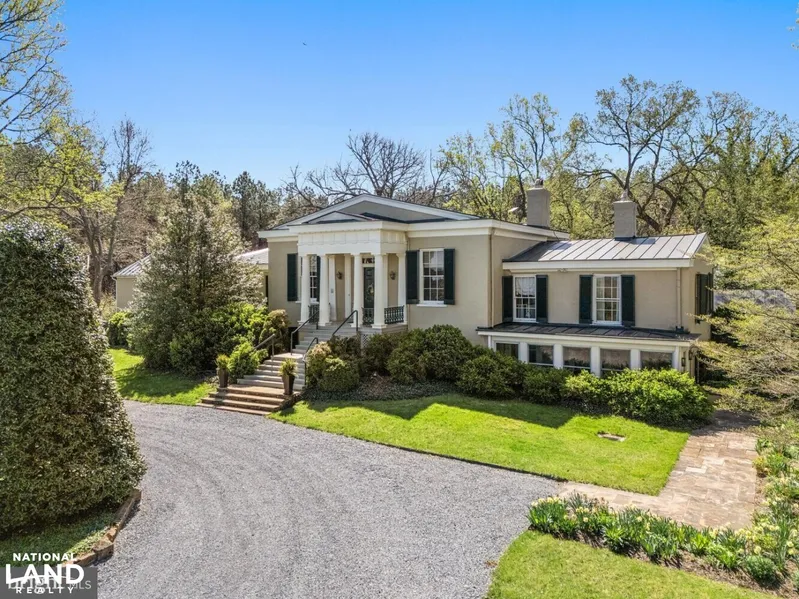 The stunning and historic estate of Ashleigh, ca. 1840, is rich in history and beautifully sited to enjoy the magnificent gardens as well as grand views of the Delaplane countryside. These 98 acres were once part of Oak Hill, Chief Justice John Marshall’s estate, and the stone and stucco Greek Revival Manor house was designed and built for his granddaughter, Margaret Marshall Smith, and her husband. Ashleigh is listed on both the National Register of Historic Places and Virginia Historic Landmarks. To further protect the estate, the current owners put Ashleigh into a conservation easement with The Land Trust of Virginia. Wide stairs ascend to the columned front portico, from there one enters the grand front hall. Some exquisite details of the hall include beautiful heart pine flooring and wide moldings, large, deep-set windows, and a ceiling height of over 12’. Through deep-set, heart pi...