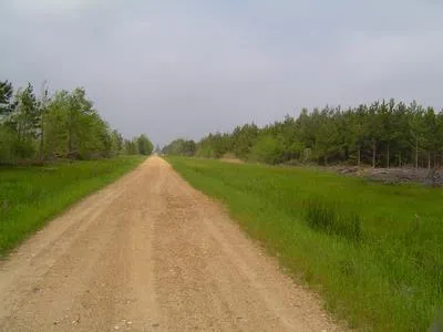 Ashdown Tract "South" is located on the left (south) side of gravel road.