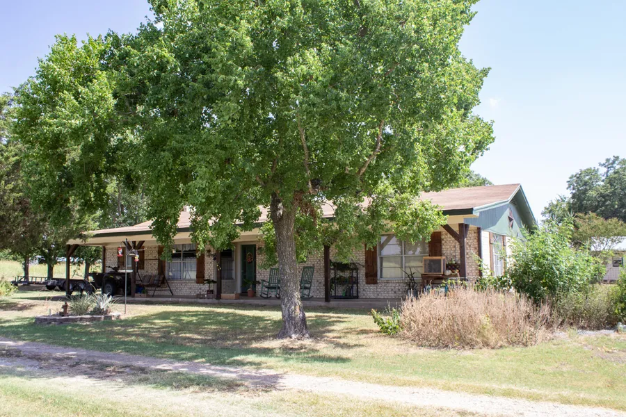 Improvements- Three bedroom, two bath 1,796 sq ft (per FCAD) brick house was built in 1979 (per FCAD). Home sits on 29 beautiful acres of both native and improved grasses currently used for hay. The home has an open concept kitchen, dining and living area with large windows that overlook the front and backyards. Living area also has a wood burning fireplace giving the area a cozy feel. There is tile throughout the house with carpet in bedrooms. The spacious bedrooms all have large windows making for amazing natural lighting throughout. The front porch is the length of the entire home making it the perfect place to overlook the land and stock tank. Back patio is covered and has a wind block on the north side. Backyard also has a storage shed, perfect for lawn equipment for the impressive garden area, and is fenced in excellent condition. Additionally there is a livestock/equipment barn with electricity perfect to 4-H or FFA projects.