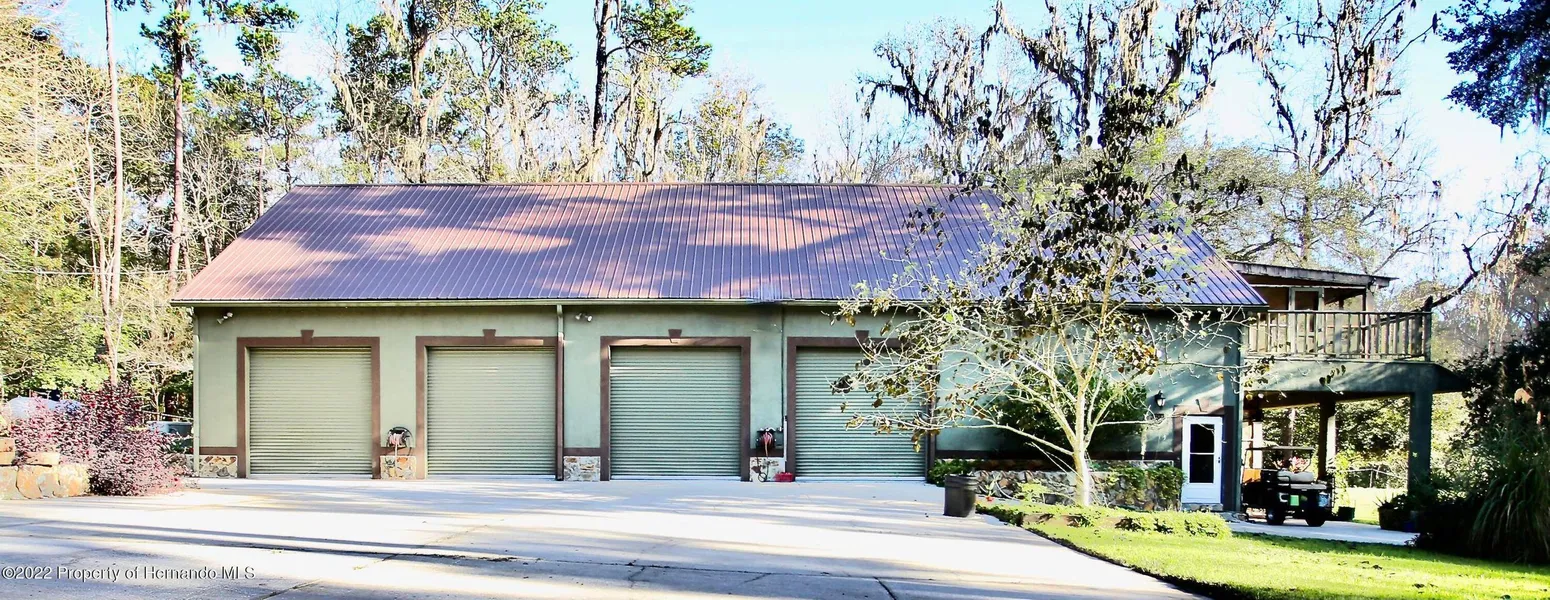 Farm to table? Lots of toys need space of their own? Unconventional 1645 SF 3/2 home connected to a 2400 SF garage for over 4000 SF under one roof. 3 phase electric, new Generac Whole House generator in 2021, new metal roof in 2020. Two large pole barns and five additional outbuildings. High speed internet, very private location, paved dead end road and conveniently located with east access to I-75. Tampa, Orlando or Ocala only about 45 minutes so close enough to the big cities yet once you get behind the gate to the property you can leave the big city worries behind.