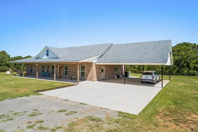 Modern Farmhouse 3/2 open concept sitting on 120 acres M/L. Beautiful living & dining area has beamed ceiling & is open to the kitchen w/granite & a lg island. Two lg covered porches ft & bk, split plan, drop zone & extra lg attached carport. This home has 2X6 exterior walls & extra insulation to make it high efficiency. Property is ready to run cattle & great for hunting! One 3 acre pond M/L & 1 smaller, fully fenced 5 wire, less than 5 miles to Deep Fork River. Located midway between Tulsa & OK City.
