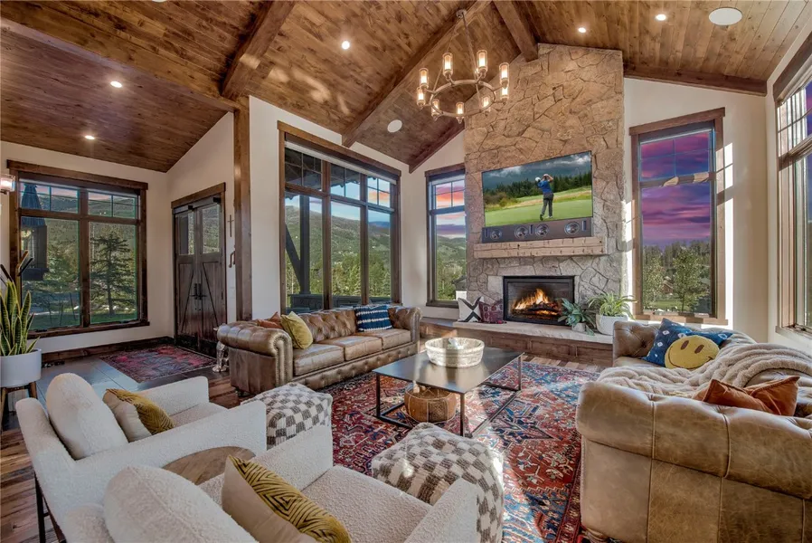Welcome to 329 Raven Golf Lane, an exceptional mountain retreat in Silverthorne's Three Peaks community. Ideally located just steps from the Raven Golf Clubhouse, this home offers convenient access to the course while backing to the community park, volleyball courts, and scenic trails with direct Gore Range access. Crafted for both comfort and function, the residence showcases over $200,000 in high-quality upgrades. A fully integrated URC Smart Home system includes automated Lutron lighting, Screen Innovations motorized shades, in-ceiling Focal speakers, and a comprehensive video surveillance setup. A dedicated theater room offers an immersive viewing experience, while the private hot tub and two custom stone fire pits create a welcoming space for outdoor relaxation and gatherings. Inside, the open floor plan flows from a well-appointed chef's kitchen into expansive living and dining areas with vaulted ceilings and large windows that frame mountain views. The home features four en-suite bedrooms, two powder rooms, two laundry areas, and a spacious primary suite with a private balcony and spa-style bathroom. Offered fully furnished with curated interior selections and major furniture pieces (valued at over $200,000), this home is ready to enjoy. Conveniently situated near the amenities of Silverthorne and within close proximity to six renowned ski resorts: Keystone, Breckenridge, Copper, A-Basin, Vail, and Loveland. It offers year-round recreation and elevated living in the heart of the Rockies.