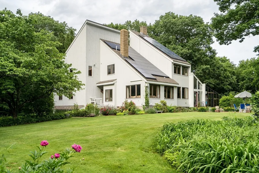 Exceptional country estate featuring a custom-built contemporary on 33+ acres of land! This single-owner property, with soaring ceilings and banks of windows, offers an expansive fireplaced living room, a gracious dining room, bright & sunny family room, eat-in kitchen with stainless appliances & granite countertops, spacious bedroom, full bath, and a picturesque heated sunroom ALL on the 1st floor. The upper level includes an en-suite primary bedroom with a walk-in-closet, 3 additional bedrooms and an updated hallway bath. Expansion potential in the attic is a bonus. Outdoor enthusiasts will be delighted by the in-ground pool, hiking trails, cross-country skiing, fruit orchard, perennial gardens, flowering trees, and more. Newly painted exterior, new 200-amp electric panel, portable generator, central AC, Jotul wood stove, central vacuum, sprinklers, and a 3-car garage. With it's top-rated schools, don't miss this opportunity to live in Harvard and make this suburban oasis your home!