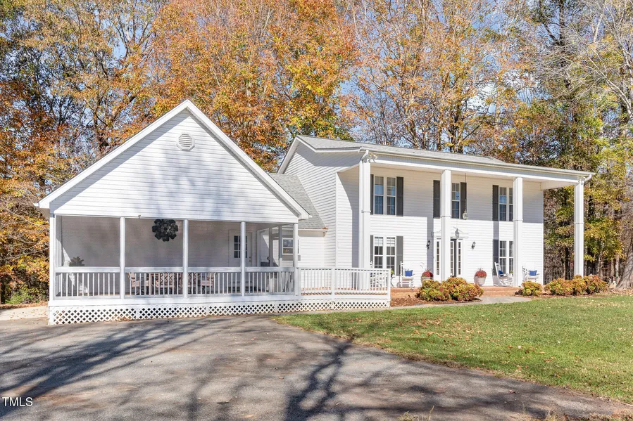 *OFFER DEADLINE HAS BEEN SET FOR 6:00 PM THURSDAY 11/21/24 **Psst...A Sweet little secret lies hidden from the world in the Mill Creek area of Mebane. Perched on a gently sloped knoll overlooking a beautiful 8+ acre pond that qualifies as a small lake with over 600 ft of frontage, lies a charming 2400 sqft , 4 bed + flex room, 2 ½ bath colonial styled home, featuring a large downstairs primary suite, and a massive 24 x 14 front facing (newly)screened-in porch overlooking it all! The property sits on two lots which will be sold together totaling 33.5 acres with a deeded right of way easement that stays with the property subject to a recorded road repair agreement. The sellers moved and renovated the kitchen in 2019 which now includes a double oven, farmhouse sink , breakfast bar, new soft close cabinets, a SS 3 door LG Fridge (2019) which conveys, also finishing out the area between the kitchen and the screened in porch to create a mudroom area and opening up the space between the kitchen and dining area to create a nice open flow in the main floor area. Permits were not pulled. The dining area is very spacious and could easily accommodate 8-10 people. The downstairs living area and primary suite feature beautiful hickory hardwood floors and have both been freshly painted. The upper-level features 3 very spacious bedrooms, an additional flex room currently being used as an office and a shared bathroom with tub/shower combination. Roof replaced in 2018, new gutter guards installed in 2022, the upstairs HVAC was replaced in 2018, but the downstairs unit is original to the home and is in need of replacement. A quote has been obtained and the seller will replace it once under contract and prior to close. The home is on a 4 bd conventional septic system pumped in Sept/24, well inspected in Nov/24. The home has a whole home water softening/purification system last maintained/inspected in Nov/2024. The home has an attached 2 car garage but also features a large 4 car paved parking pad + circular drive for ease of exit. Carpets have been cleaned but are in need of replacement. An angler's dream, the lake has been stocked with Bass, Bream, Catfish, and wildlife of all kinds frequent this blissfully private oasis with no land use restrictions. This home is brimming with limitless potential to make it your own. Duke Power easement cuts through the midpoint of the property but is not really visible from the home, only on the approach. The seller currently has Billy goats (do not convey), ducks (they'll do as they please) and honeybee hives (tended to by a local beekeeper and can remain on the property or be removed) on the property. Seller would prefer an AS IS sale. Less that 10 mins from Mill Creek Golf Course, Tangier Outlets, charming Historic Downtown Mebane and districted to Orange County Schools - this truly is a little slice of paradise just waiting for you to call HOME!