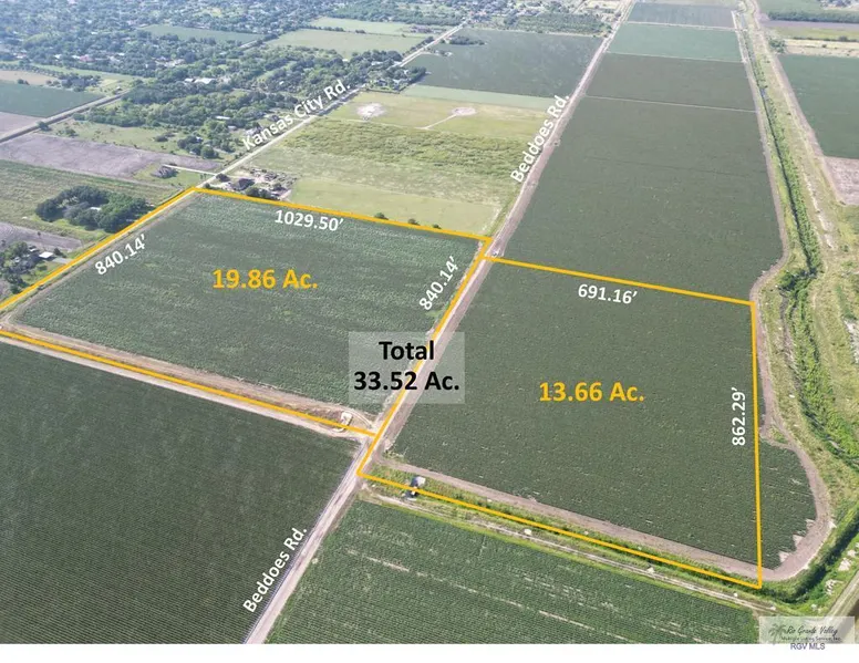 REDUCED!! Great piece of land with the potential to be just a few homesites or a full scale subdivision if the buyer so desires. This tract of land has everything you hope to find in an investment. The land has 840' of frontage on S. Kansas City Rd. It has access to city water and city sewer through the city of La Feria. It also has access to electricity along Kansas City Rd and a major drainage canal along it's southern boundary line. This property is located in Flood Zone X and Flood Zone X (shaded). The land handled the March 28th flood with ease. The land is currently being farmed and the taxes are extremely low due to the ag exemption status of the property that will convey to the buyer. The western 19.86 acres fronts on Kansas City Rd and the eastern 13.66 acres is divided by Beddoes Rd (unimproved dirt road) that comes through the middle of the property. The land has over 1600' of frontage on Beddoes Rd. This property has a ton of potential and is priced to sell.