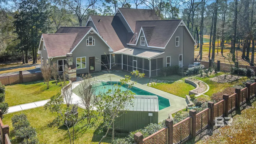 Home has a NEW ROOF, New AC and New Custom Pool Liner. Escape to Grandeur: A Gated Victorian Paradise Awaits in Semmes, Alabama. Embark on a journey to unparalleled splendor at 2950 NicLib Lane, a majestic Victorian estate nestled amidst 34 sprawling acres of secluded tranquility. This gated haven in Semmes, Alabama, invites you to experience the very essence of southern charm and luxurious living. Step onto the porch, a picture-perfect haven for sipping sweet tea while soaking in the serene landscape that unfolds before you. Let the gentle Alabama breeze whisper through the mature trees, carrying the soothing sounds of nature as you unwind in unparalleled peace. Venture inside, and be captivated by the home's grandiose Victorian architecture. High ceilings, ornate moldings, and gleaming hardwood floors evoke a sense of timeless elegance. Gather loved ones in the spacious living room, warmed by the crackling fire in the cozy fireplace. Imagine hosting unforgettable evenings in the formal dining room, where laughter and stories flow freely. Indulge in moments of relaxation in one of the home's five bedrooms, each offering a tranquil escape. Unwind in the master suite, a sanctuary of luxury with its en suite bathroom and breathtaking views of the sprawling estate. Step outside, and your private oasis awaits. Take a refreshing dip in the sparkling pool, basking in the warmth of the Alabama sun. Gather around the outdoor fireplace on cool evenings, sharing stories and laughter under the starry sky. Host barbecues and gatherings on the expansive grounds, creating memories that will last a lifetime. Store your vehicles in the spacious garage, which even features a separate living space above, offering versatile possibilities. And never worry about power outages - a reliable home generator ensures comfort and peace of mind, no matter the weather. 2950 Nic Lib Lane is an experience. It's a legacy property, waiting to be cherished by generations to come. Buyer to verify all