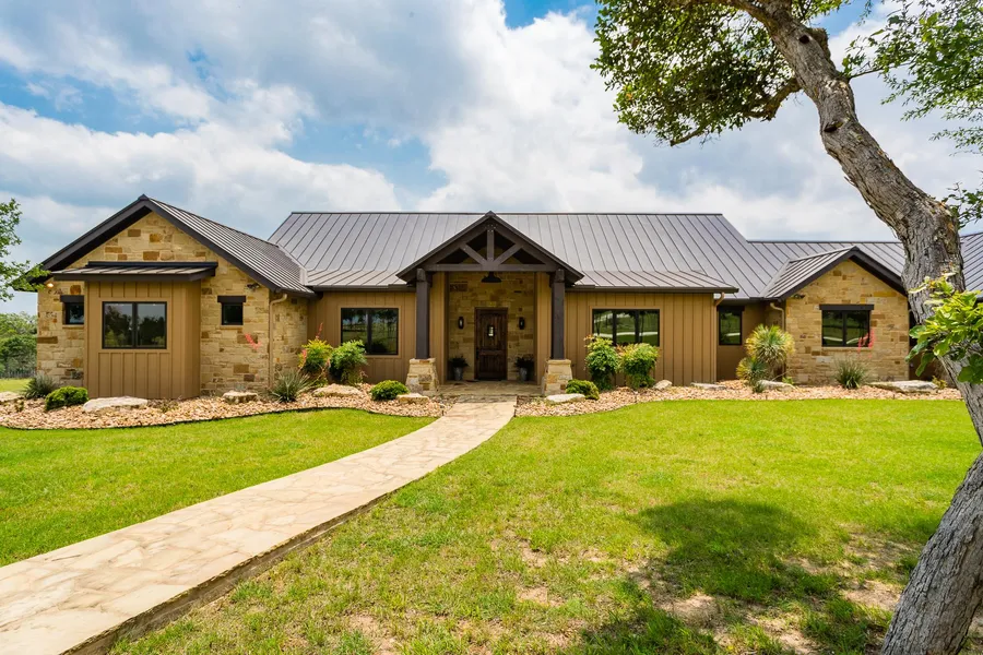 This gorgeous property is Ideally located between Fredericksburg and Kerrville in the high end Falcon Ridge Ranch. The custom Hill Country home was built overlooking the lake below, offering tremendous views off the back porch to the Southeast, allowing you to take full advantage of the prevailing breezes. As you walk into the front door of the house you are greeted by the large open living area with huge windows that allow you to enjoy the view and provides tremendous natural lighting. The living area has tall vaulted ceilings with wood beams, built-in shelving, hardwood floors, and a large rock fireplace. Off of the living area is an amazing gourmet kitchen with Wolf and Subzero appliances, double oven, gas range, large island and beautiful granite counters. The large master suite offers huge his and her closets, large walk-in shower, over-sized soaker tub, and dual vanities. Along wit...