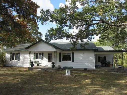 Nice home w/paved highway frontage sitting on 33 mostly-wooded acres. This home has 3 bedrooms, 3 baths, a partial unfinished basement, nice kitchen, 2 car attached garage, and 33 acres to roam around on. The property would be great for recreation because of its rock and cave structures and park-like setting next to the wet-weather creek.