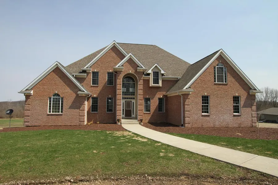 Private, secluded oasis on 33 acres with 6,396 sq ft of open living space. The grand entrance has a magnificent chandelier and gorgeous polished Travertine floors that continues into the formal dining room. The abundance of 2-story windows throughout offers incredible views. The custom hickory kitchen is a chief's dream with exquisite granite counter tops, huge walk-in pantry, breakfast bar, Center Island, eating area, and top of the line appliances. Sit by the cozy fireplace in the great room or enjoy warm summer nights on the large deck. The first floor master suite has a fireplace, seating area, access to the deck; the master bath has a walk-in tile shower, dual sinks and jetted tub. The main floor also offers a office & laundry/mud room. All three bedrooms upstairs have private baths. The walk-out level offers 9 ft ceiling,is great for entertaining,with a kitchen, family room, game a...
