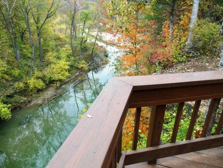 Custom Cedar Log/Native Stone Cabin with Awesome Deck sits on a Bluff overlooking Bryant Creek. Custom Knotty Elder Cabinets and new counter tops recently installed in Both Kitchen and Bathroom. Great Room, Large Bedroom and office complete the main floor. Spiral Stairway goes up to the 2 Loft-Style bedrooms, each has its own privacy curtain. Walk out the Kitchen onto the large Private Deck which overlooks Bryant Creek, a year round creek. This property has more than a quarter mile Bryant Creek frontage including trails along the bluff line and frontage at a county road bridge. There is also a second wet weather creek with seasonal springs and beautiful bluffy terrain perfect for hiking trails and hunting enthusiasts. Mostly wooded land does include a fenced 3-4 acre pasture and large 60x80 high fenced Garden Spot and 3 Bay machine shed. 26x28 Barn with concrete floor and electric has 1 car parking and shop area, Rec Room on top and attached 14x26 lean-to storage. 7x11 Chicken House, 8x9 Greenhouse 3000 ft electric fenced dog run and collar included. Deck also has an automated canopy that can be used for afternoon shade or to sit under during the rain. Call for your Showing today!!