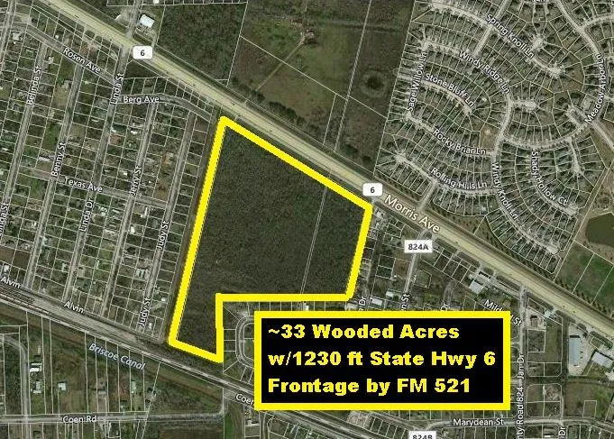 Great Location! ~33 Acres w/1230 ft State Hwy 6 Frontage by FM 521 & Lakes of Savannah. Minutes to TX-288 & BW-8. Can Be Subdivided! Also for Sale Subdivided as 15.75 Acres & 10.5 Acres in Fort Bend County and 6.75 Acres in Brazoria County (see Plat Subdivided). 15 miles to Texas Medical Center & Sugar Land. 25 miles to Downtown Houston. Potential Railroad Access! Perfect for Residential Development, Supermarket, Strip Center, Urgent Care, Church or Industrial Warehouses! Pearland ETJ.