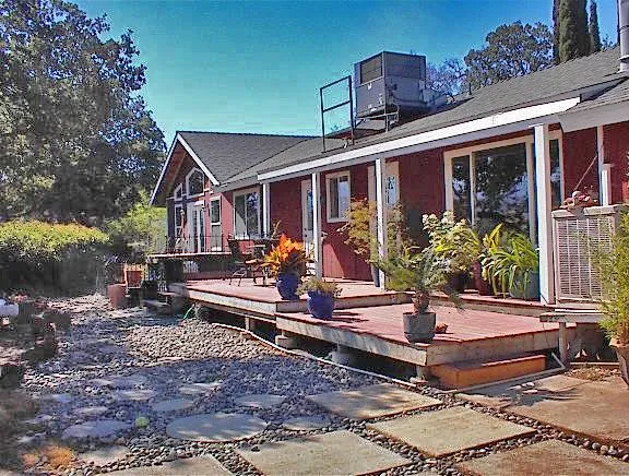 Let's begin with the centerpiece of this unique property... the home. Originally built in 1977 as a modest 1,100sqft 2b2ba home, in the early 2000's it received a series of additions and professional remodelings that transformed it into the beautiful custom residence it is today. Upon entering, you will find an awesome wide open floor plan that is highlighted by the split level living and family rooms, both with parquet wood floors and large picture windows to take in the panoramic views of Squaw Valley and the Sierra's beyond. The living room has vaulted beamed ceilings, a neat high-efficiency freestanding wood stove, and access to the large front deck and fenced yard. The step down family room has a full wall of mirrored storage closets with double patio doors to a trellis covered patio. Immediately adjacent to the living room is an eye-catching and very functional dining area and an equally attractive and functional kitchen area. The dining area features a custom designer tile floor and is framed with a picture window wall, open wall for a dining hutch and a neat finished wood topped half wall that looks out over the living and family rooms. The truly spacious galley style kitchen has a multitude of beautiful custom white cabinets and five separate granite countertop areas with full height granite back splashes and diagonal tile flooring. You won't lack for storage or for food prep space. This is a kitchen any cook will love. And it has access to the back deck where you have lots of space to set up your BBQ. The sleeping quarters in this home are equally unique. Each bedroom has its own bath room access. The first bedroom has direct access to the mudroom bath which also exits to the front deck. The second bedroom has direct access to the hall bath (sort of a "Jill" bath) which also serves as the guest bath. Then we come to the master suite area. This was the final 720sqft addition to the home and it includes a huge master bedroom, master bath and master wardrobe, and a new utility room. The master bedroom features plank wood flooring, cathedral ceilings, and loads of windows to let the breathtaking views in plus a double door exit to a small sitting deck and access to the sumptuous outdoor spa. You can soothe all your cares away under a starlit sky. Now that's living! The master bath has a great double lav sink with granite counters and custom mirrors plus a huge walk-in double shower with floor to ceiling designer tile. And, it's all topped off with a spacious walk-in wardrobe closet with custom organizers. The utility room has extra cabinet space, a deep sink, and an exit on to the back patio. Put it all together and you have one very functional and very unique residence that is designed for country living. Now let's take a look outside.