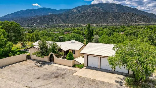 3375608 Country living conveniently located between Salida and Poncha Springs on paved County Road 120. Outstanding 360 degree views, lush backyard with seasonal irrigation ditch flowing through. This 4 bedroom home has 2 large living areas and an expansive bonus room providing amble elbow room for your family, friends and activities. Bright and light filled kitchen has a wall of southern windows w/ attached eat in dining room. Chefs will appreciate solid oak cabinets, stainless steel appliances, plenty of counter space, and an oversized pantry. Check out the hidden spice rack. This home sits on just over 2 acres with terrific southern exposure including solar panels to reduce your monthly bills. Enjoy relaxing on the large wrap around deck, the grassy front yard, or front courtyard depending on which view you prefer! Hone in your gardening skills in the newly paneled (July 2022) custom greenhouse. For all you gear-heads and toy collectors, there is an oversized 3 car garage with additional shop below, giving you more than 1,600 SF of workspace & storage. Staying connected to the surrounding communities is easy with the Salida walking path out your front door, as well as Lagrees grocery, Salida Vino Winery and Elevation Brewery all within a mile. A historical Poncha Springs railroad building is located on the property for the history enthusiast. Come check out this unique opportunity!
