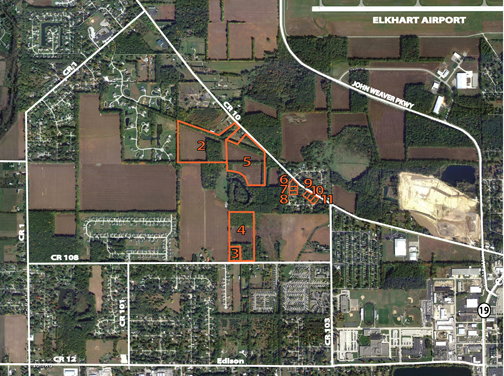 LOCATION: All tracts are located on the north and northwest edges of Elkhart. Tract 1 is located on the east side of Hwy 11 and north of I80-90. Tracts 2-11 are south of CR 10 (Bristol St.), north of CR 108 and west of CR 3