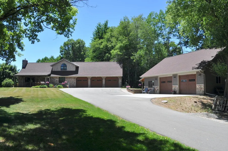 Country living in the city! Custom built, one owner home & newer shop on 15 acres in the city limits of Green Bay. Soaring two story field stone fireplace, well appointed kitchen, first floor master suite, 4 season sun room, open staircase to loft that could easily be used for a 3rd bedroom. Walkout lower level features a stunning bar, family room, possible bedroom area & full bath with new tile shower. Attached heated 3 stall garage with stairs to the basement and a detached 30x40 heated shop (2017) with a huge upper bonus rm and covered patio area with outdoor fireplace. Impressive, private acreage with walking trails is full of wildlife. New roof in 2017, new furnace 2021. Pride of ownership shows here. Acreage properties like this are rarely found. Call today to start realizing your dream of living in the country...without the drive!