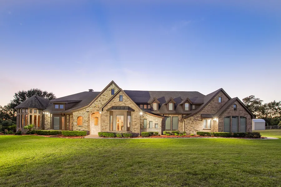 Beautiful 35.92 AC Estate with a custom home, private pond, large covered patio with views of waterfalls, concrete drive from the entrance to the house and a large (8250sf) insulated/conditioned metal shop. The home features 4 bedrooms, a study/home office, 5 full bathrooms, large open kitchen with extensive counter space, custom 5" Hickory flooring, crown moldings, 2 wood burning brick and mortar fireplaces, custom window treatments, over 100 windows, 5 zoned HVAC units, central vacuum system, and extensive exterior lighting. The primary bedroom has a large sitting area overlooking the patio and property. The shop has potential living space, 5- insulated commercial electric doors, pedestrian door entry, and 2 HVAC units. The entrance has an electric gate and the entire property is fenced and cross fenced. The entrance is on HWY 6 with over 1600 ft of frontage and 587 ft of frontage in t...