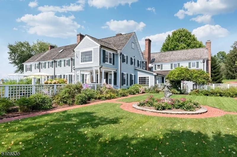 Heaven on Earth. Deerfield Farm Estate and Equestrian facility sits atop 34.48 acres and enjoys breathtaking unobstructed views of the Somerset Hills to the south and west. Renovated in 2014, the main house boasts 6 bedrooms (5 ensuite), 6.3 baths & 11 fireplaces. Equestrian complex includes riding ring, 8 stalls, tack room w/ wash stalls, barn & 4 garages. 3 Bed cottage & detached 3 car garage w/ 2nd fl. 2 bedroom apt complete the out buildings. Grandeur at it's finest, 4 sets of doors exit to a sweeping bluestone patio, gardens, sunset patio, & sensational pool area. Bulk of property is farm assessed and preserved. Rollback tax, if any, is the responsibility of buyer.