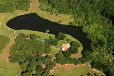 A gorgeous, scenic & stocked 2 1/2 acre winds around in front of both the main residence and the Santa Fe House and provices for great recreational activities. A natural spring keeps the water level at a nice capacity. There is a nice covered synthetic pier in place for fishing. The lake has had recent dam restoration. Other features include a 20 x 30 plus a second 18 x 30 metallic barn on concrete slab, both with an overhead doors. For the kids, the tree-house provides an great escape plus a secret place to do some nature watching.