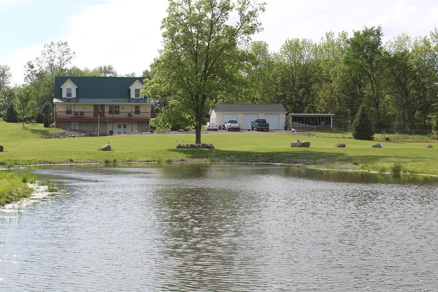 Excellent Hunting and Fishing on this gorgeous 34 acres of woods and water! This newer 2 story home has a finished walk-out lower level and a 3 car detached garage for all your vehicles, toys and equipment. This home features an open floor plan, hardwood floors, master bedroom suite and laundry on the main floor. Recently added granite countertops and glass backsplash. Upper level, two large bedrooms featuring pine walls and ceilings, window seats, huge closets and large full bath. Lower walkout level finished with family room, full kitchen and dining area, also a second master bedroom suite. Enjoy the view from the large wrap around deck while you look out across your large fishing/swimming pond that is 27ft deep and stocked with bass and huge bluegill.