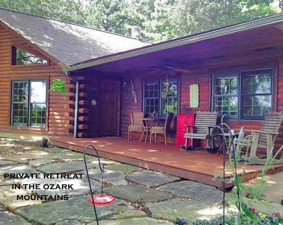 Genuine Oak Log Home, 34 wooded acres m/l on bluff above Piney Creek. Open floor plan, vaulted ceiling, country kitchen oak cabs, updated app. & island. Dining & great room boast views of 2 sided stone fireplace. Floor to ceiling windows w/distant Mtn. Views. Master bedroom is ensuite, 3rd bedroom off utility rm great for guests. Updates A/C 2015, Roof 2010, laminate floors 2006, whole house generator 2012. Storage shed, wooded privacy, multiple paths to bluffs w/stunning views of Creek.