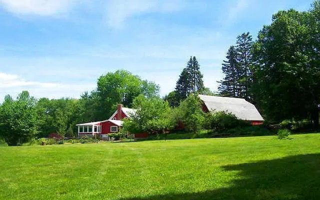 HARMON POND FARM; well maintained antique cape on 34 acres, all wood floors, fireplace, granite countertops, additional huge cast iron cooking stove, cathedral family foom, sun room, quiet and traquil setting just 7 minutes off I-84, entire ownership of the pond with 8 pound bass, 2 story walk out barn with 5 stalls, 2nd floor near grade would be great for studio, workshop or extra living space, 2 car plus one car garage, fruit trees (huge apples), screen house down by the pond, good hunting, trails, abuts the 7,840 acre Yale Forest, potentially subdividable.