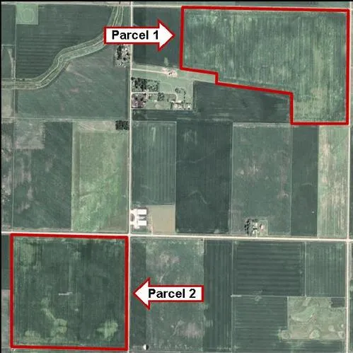 340.6 acres, m/l, to be offered as 2 individual parcels at auction on Friday, July 16, 2010 at 10:00 a.m. Auction Site: Rockwell City Comm. Ctr. (424 Main St.). Parcel 1 contains 176.2 NHEL crop acres with average CSR of 80.9 Annual Taxes on 176.25 net acres is $3,912.00. Located in Drain. Dist. 16 & 193 of Calhoun Co. Corn Base 88.1 with yields of 122/136. Bean Base 88.1 with yields of 28/34. Parcel 2 contains 155.7 NHEL crop acres with average CSR of 73.5. Annual Taxes on 154.61 net acres is $3,218.00. Located in Drain. Dist. 91 and 194 of Calhoun Co. Corn Base 77.9 with yields of 122/123. Bean Base 77.7 with yields of 27/32. No wetlands on either parcel per NRCS certified wetlands determination. Farms are enrolled in the ACRE program. AgLime was applied using variable rate technology in Fall 2007.