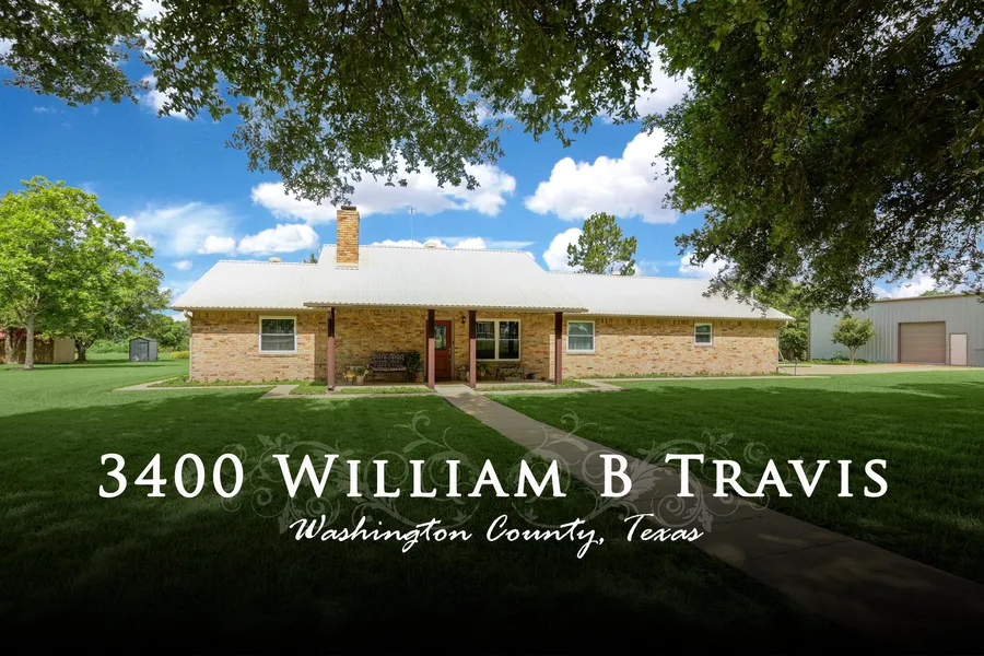 Introducing the perfect country home in Brenham! Just a short drive down William B. Travis Ln will lead you to this recently renovated, classic brick home nestled on +/- 3 acres surrounded by country properties. Built in 1990 featuring 1521 Sq/Ft, 2 bedrooms, 2 bathrooms, and 2 car garage. Also offering a new 30' x 60' metal shop with one 10' x 12' rollup door, two 10' x 14' rollup doors, one walkthrough door, LED lighting, water, and 50 amp RV plug-in. Additionally there is a +/- 28 x 23 wood-shop/storage building with water and electric. Enjoy the picturesque sunflower field right in your backyard!