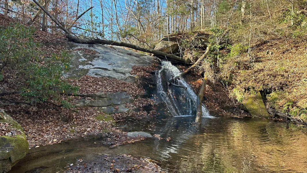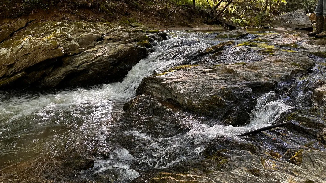 Little Warrior Creek flows for over 3,000 feet through the property, joined by two additional tributaries that create cascading waterfalls and the soothing sound of rushing water. The landscape varies from level ground to gentle slopes and elevated ridges that could offer potential mountain views. Much of the property is forested and enrolled in North Carolinas Present-Use Value Forestry Program, providing significant annual property tax savings.