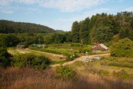 Oz Farm and Retreat is comprised of 341+/- acres hidden in a private valley along the Garcia River, less than three miles from the scenic and majestic Mendocino Coast, and 130 miles north of San Francisco. Flanked by towering Redwood Forests, the lush valley floor is home to organic certified farming fields as well as an orchard of 55 different varieties of antique and heirloom apples. Rustic accommodations include a community house and nine guest cabins. Completely off-the-grid, Oz Farm and Retreat is place to come enjoy farm to table living in a tranquil setting in nature at its finest.