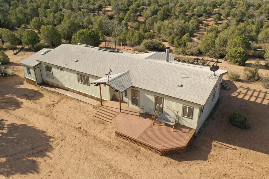 VIEWS from the deck with a home included!!!!! This is the property for someone who wants to GET AWAY! This is rural, remote and off grid - 36acers plus this property abutts 640acres to the west for breathtaking sunrise AND sunsets. Truly a very special feeling location. The property is fenced with a keycoded entrance, it has that sense of arrival that gives us all a feeling pf pride. The garden has been dormant for two years so it is more than ready for rejuvenation. The Deck has personality to mirror the blissful surroundings. A good producing well, an owned solar system and good soils make this a very survivable location for those who desire a certain amount of sustainability. Not many trees have been disturbed to put this homestead together but the ground and surrounding area is flat and could be utilized for barns and livestock easily - the soil is great for that. An appointment is required to tour - the property is fenced with security cameras etc. and you cannot see anything from a drive-by. The sellers are very accommodating less than 48hrs notice is truly OK! This property is located 2 hours from Vegas, Flagstaff and Prescott and 3 hours from Phoenix. A great starting point to explore Arizona from. The yearly temps are very moderate, not many day in summer are above 95 and not many nights in the winter get to freezing. Summer days might include tank tops and shorts as well as blue jeans and sweatshirts! There is ZERO light pollution in this area so seeing a "gazillion" stars on a clear night is a reality! Elk, Deer, coyote, javelina, quail, dove and grouse are common, rattle snakes are present but not common! Ranchers cows will be seen just outside of the fencing occasionally. ATV's are typical travel vehicles to the neighbors for a good meal or a campfire. This is as close to the wild wild west as most folks will get. Peace and quiet is common and respect for each other privacy and property rights is expected and appreciated. This lifestyle will feed your soul. The solar is adequate to support the use for the last decade or more. The well is a good producing well with excellent water quality. Make the call, Make the appointment and come see this NOW!