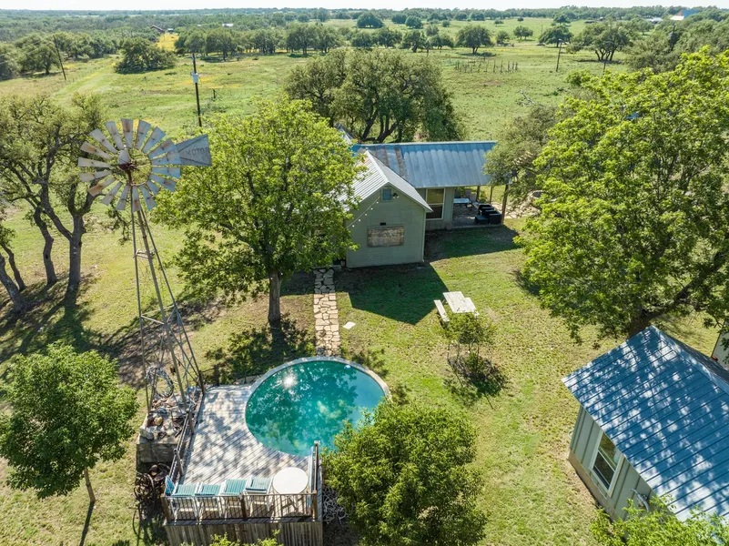 Lange Ranch checks all the boxes when looking for larger tracts in this area. Being off a paved road and less than 5 miles from IH-10 it is super convenient from San Antonio/Austin. In 30 minutes, you can be in Fredericksburg sipping wine or just build your own winery on site using the current water well. Other amenities include 2 nice cabins, 1 barn that is 2,000 sq. ft. in size, a new bentonite lined stock tank, walk-in cooler, and an above ground concrete swimming pool!