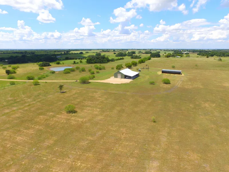 Enjoy the BEST in country living with all the conveniences of town with this exceptional, custom built barndominium on 37+ gently rolling acres just outside of Weimar!! Built by a well-known contractor with craftsmanship in mind, this one-of-a-kind barndominium features 1,600 sqft of finished living space with 2BR/2BA downstairs & 1,600 sqft of unfinished living space with central air/heat upstairs that could be utilized in any number of ways to suit your needs!! The remaining enclosed portion of the barndominium includes a utility room, bathroom & 1,600 sqft of space for your RV & "toys"!! Entertain family & friends under the 30'x80' overhang highlighted by an outdoor kitchen, stone fireplace & access to the enclosed portion of the barndominium through the glass & aluminum garage door!! Admire the gently rolling terrain from the front porch where views of the pond, scattered trees & imp...