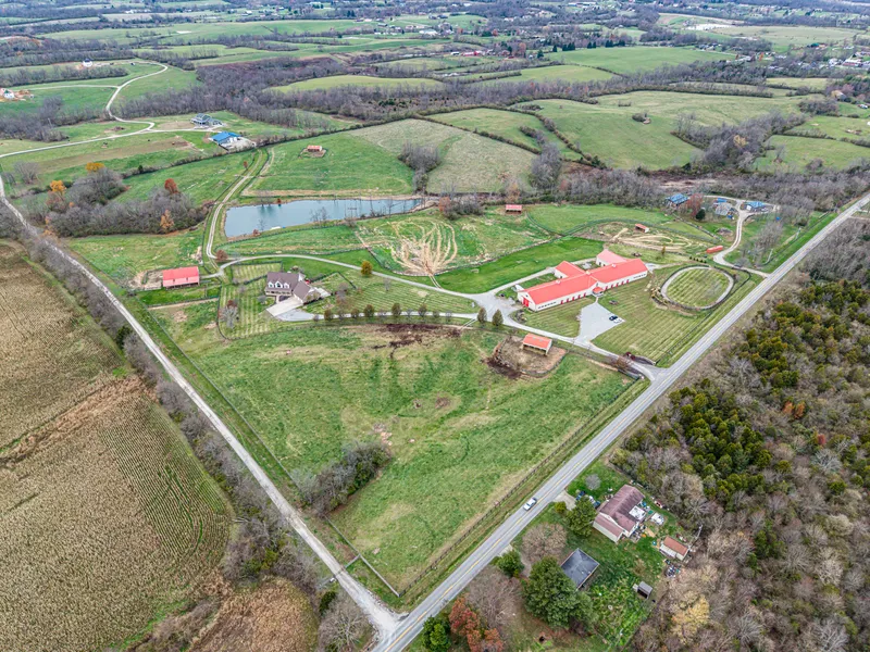 Refined Contemporary Country Home with Professional Equestrian Facility on 35.41 idyllic acres just outside of Shelby County, Kentucky in Henry county, is turn key and strikes the perfect balance of easy luxury and utility. The beautifully appointed family home features approx. 5,000 square feet of tastefully finished living space, exceptional chef's kitchen, partially finished walkout basement w/second kitchen area, new windows, roof, geothermal HVAC system and all floor coverings. two fireplaces, large deck overlooking pastures and pond, 5 bedrooms, 5 full baths and 3 car attached garage. Back up home generator. The 31 stall professional training facility with concrete foundation is well designed with efficiency and opportunity in mind with massive heated indoor work aisle and large round-pens on each end, approximately 28 of the 31 stalls are matted, office, lounge, bathroom, laundry room, work and show tack rooms and every amenity imaginable to keep your horses in utmost comfort. Large enough to support your current equine business or start expanding. New automatic waterers and spray system in stalls, and two feed rooms. 4-20x22 stall broodmare barn, w/water, large outdoor arena, pond, pastures with run ins and automatic waterers in fields, round out this spectacular property filled with all you need for elevated country living and a thriving equestrian business.