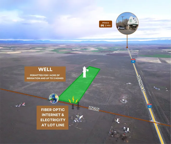 35.01 acres in PRIME LOCATION with UTILITIES and pristine views. Most of the heavy lifting already completed to start building. There's electricity and fiber optic internet cable at the lot line. Survey comes included with all boundaries and corners marked. A well is already scheduled to be drilled in July - and will be included with the price (buyer can choose where to place it). The level building site offers a perfect starting point for your new home, with 360-degree views of the mountains and direct views of the Great Sand Dunes National Park.