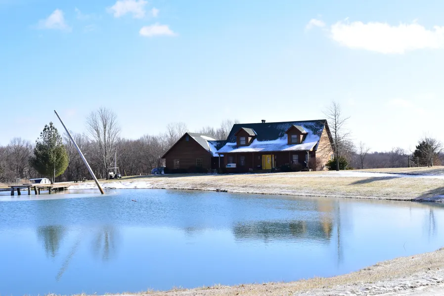 Cedar Cape Cod/Pond/Outbuilding/Hwy Frontage! Country living at its finest! This 2 1/2 story cedar home has 35 Acres of Land, a pond and blacktop frontage! The home is made up of 4BR-3 1/2 BA. The vaulted living room boost a floor to ceiling stone fireplace and windows! Gorgeous Knotty pine ceilings open to the second level! Extra wide stair casing to the upstairs and basement. Custom made maple kitchen cabinets with gas cook top and eat-in bar. Spacious pantry and eating area. Main level master bedroom/master bath with his/her sinks, walk-in shower, sunken tub and walk-in closet. Open to main floor the 2nd level has 2 spacious bedrooms w/built-in cabinetry, attic storage area and a jack and Jill bathroom. Laundry room/mud room w/closets. Walkout basement is partially finished w/full bath, bedroom, Rec/family room, concrete covered safe room and plenty of storage!