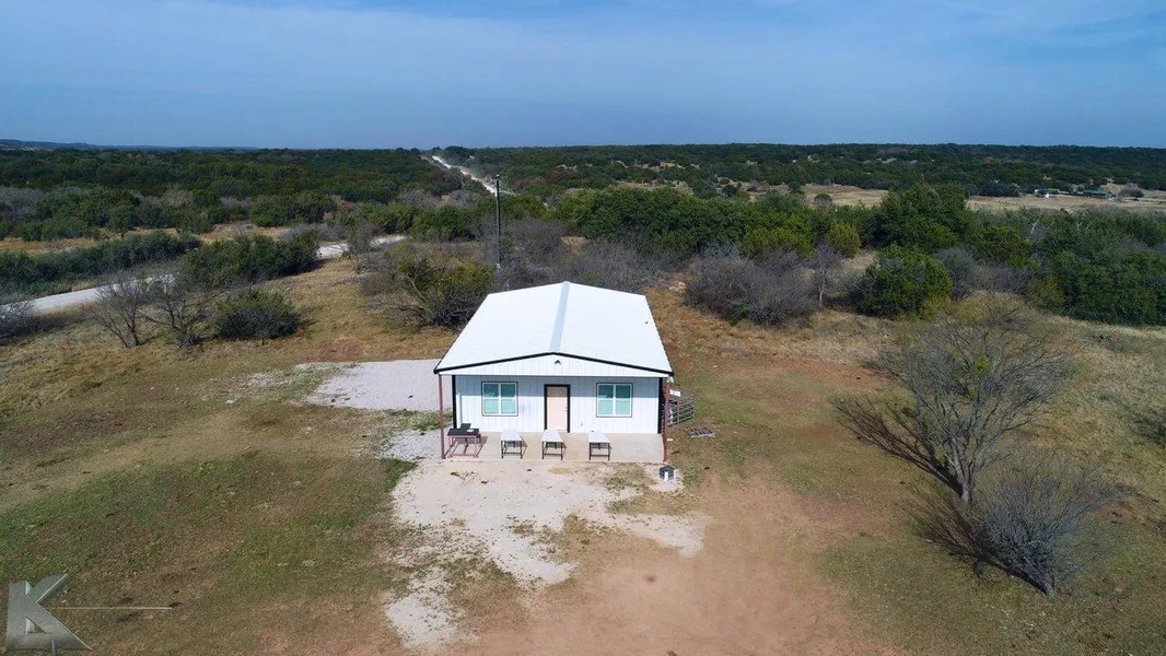 Amazing 35 acres with so much to offer! Located just North of Cisco. Metal building built in 2020 has tons of potential. Currently being used as a shooting & reloading room. Open the window & shoot down your own gun range! Range is built into the hill with targets at 110 & 460 yards. Built-in shooting benches! Custom oak cabinets. Island has holders for your rods. AC & heat provided by mini-split. No water, but there is a rainwater collection system that runs the toilet and sink. 2 bay doors open up into the workshop/garage area. Barb wire perimeter fence in good condition. New fence on the South side. Electric gate opener. Varied topography with beautiful views all around! You could make this anything you want! So many possibilities!
