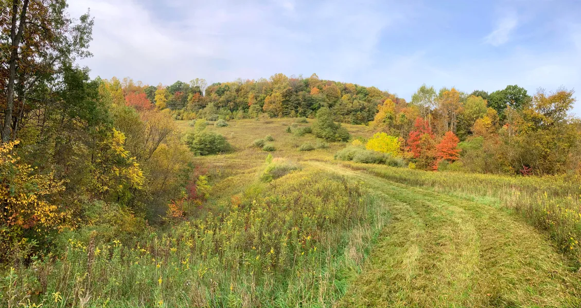 Beware that there is a chain which crosses the property entrance. Do not hit the chain with your vehicle. Walk around the chain and head up the mowed trail. People viewing or showing the property must wear hunter orange between October and February. The pond at the bottom of the valley is on the neighboring property and therefore is not included in sale.