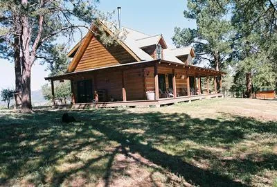 Colorado Mtn. Home offers the following: Incredible Mountain Views, borders National Forest, ready for horses, great pasture with water rights. Setting in the Ponderosa Pines overlooking the mtns. and valley this 1621 sf, Hand Hewn Timber home includes 3 Bedrms, 2 Baths, open floor plan with loft, woodstove in the living room and large wrap around deck. Horse set up includes a tack room, storage building and barn. Pastures yields an abundance of hay every summer.