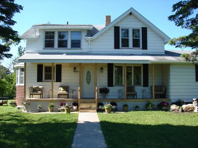 The farmstead has been around since 1915 and in the last few decades was used mainly as pasture for livestock, and then as a weekend retreat for a family, looking to get away from the hustle and bustle of the city and enjoying many lazy afternoons on the water or just relaxing in the country atmosphere. Now the home got a facelift and a new inside to make it easy on any city slicker to live in the country. The bay window in the kitchen is overlooking the lake and the round seating area there is perfect to enjoy your breakfast. All brand new oak kitchen cabinets have roll-out shelves at the bottom. An archway leads into the living room featuring an electric fireplace and the dining room has French doors out to the back deck. Many mature trees grace the lawn and the fowl on the lake is spectacular to watch. There is a great blue heron, swans, pelicans, ducks and of course lots of Canadian geese.