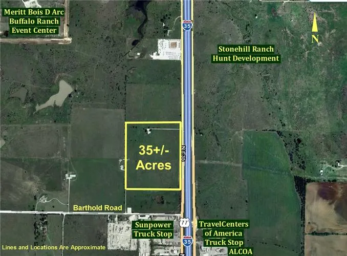 Approx 35 acres fronting I-35 in Denton, excellent highway visibility, just minutes from Loop 299, University Drive, and the new Razor Ranch. The front 350 ft are in the City of Denton and Zoned RCR-1, utilities are within 1,000 ft (easements already acquired). Buyer to verify all info. Owner-agent.