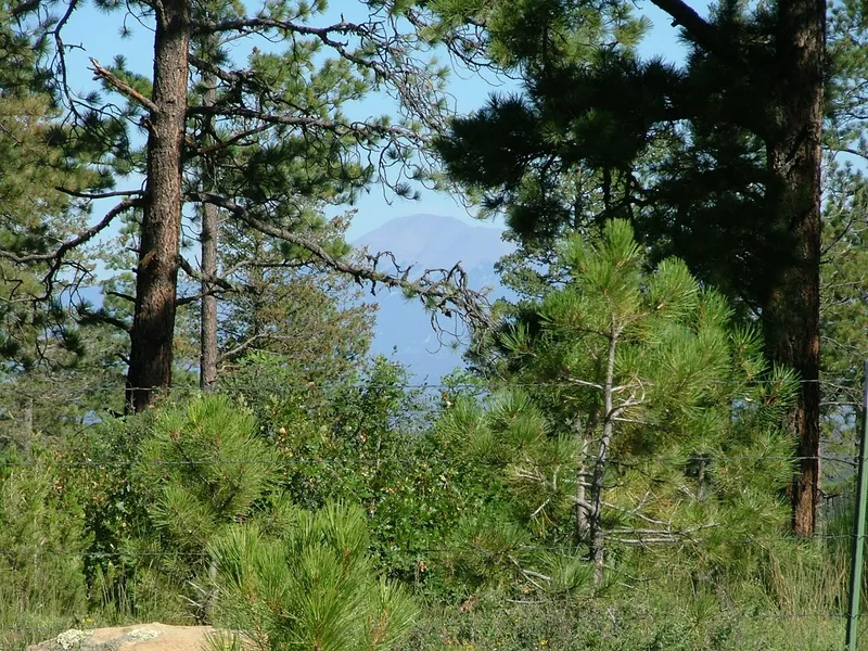 Finished driveway takes you to a large level building site area overlooking Vermejo Park with Sangre de Cristo views on the horizon and the Raton Mesa through the pines.