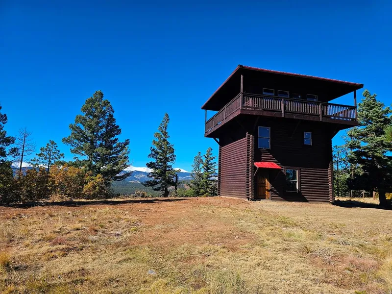 A 1000+ square foot 2 story log cabin shell is perched on this wooded 35 acre mega-view mountain property located approximately 45 minutes from the towns of Weston or Aguilar. One hour+ drive from Trinidad, Colorado.