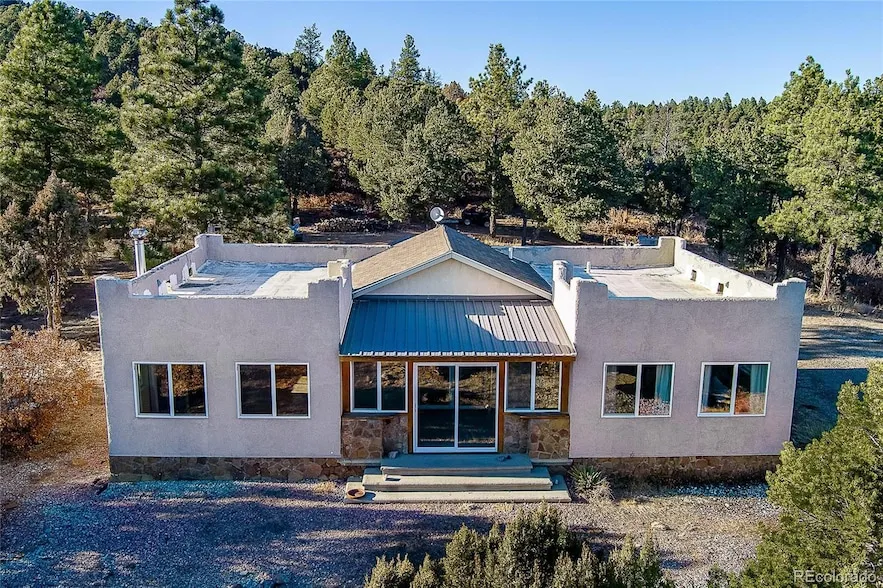 Escape to the Peace & Tranquility of Santa Fe Trail Ranch! This charming Santa Fe Style Mountain Home is perched atop the bluff of a beautifully treed lot in the Tall Pine Forest of Southern Colorado. Offering Panoramic Views of Fishers Peak/Raton Mesa, Privacy and Seclusion while being less than 10 minutes to historic Trinidad and its amenities. Perfect Get-Away or Full Time Residence - Electric radiant heat with efficient Electric Thermal Storage - 2000 gallon Water Storage Cistern - Diverse Hikeable Terrain - Rock Outcroppings - Abundant Wildlife. Just off of I-25 and directly across from Fishers Peak State Park - Close proximity to Trinidad Lake State Park - Call today to schedule your private tour and explore the possibilities this sweet property affords.
