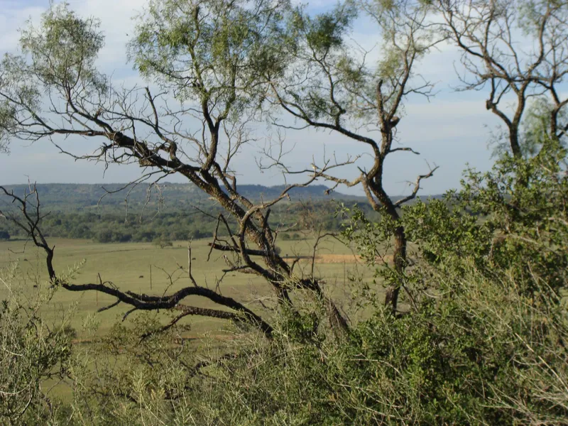 Fertile sandy loam soils with improved coastal grass. Very large post oak, live oak, black jack, and persimmon trees. Native cover for the wildlife. Hillsides covered in native woods and sandstone ledges. Located near the end of a county road. Large neighbors. Drilled 40 GPM well with electric pole. Three phase electric on site. High fenced on three sides, needs high fencing on east side.