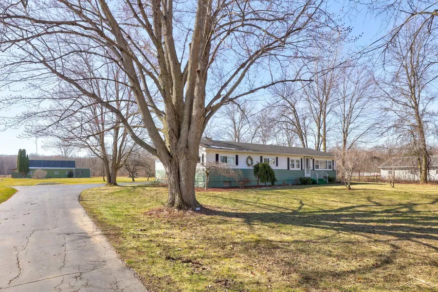 Nestled among 35 acres of serene country living, this charming ranch style home, with 3 bedrooms and 2 baths spread across 1772 square feet, exudes comfort and tranquility. As you approach you will be greeted by partially wooded landscape and lush greenery. Inside you will benefit from a thoughtful floorplan. The kitchen with ample counter and cupboard space is the heart of the home with proximity to the large dining area and enclosed sunroom that doubles as a mudroom or family room. Entertainment and relaxation seamlessly blends in the spacious living room, offering an inviting atmosphere. The primary ensuite offers privacy and extra closet storage. Practical features abound, including first-floor laundry plumbing, full and clean basement, a sump pump with backup, and cedar lined closets. Newer windows flood the space with natural light, illuminating the newly laid carpet and luxury vin...